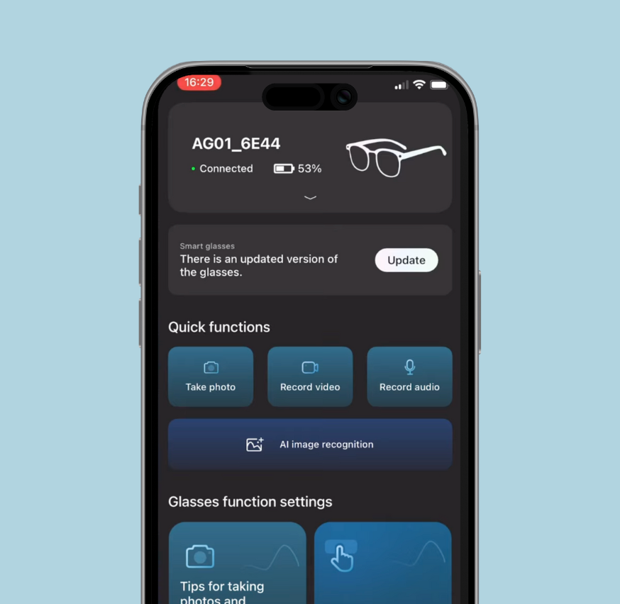 Accédez à toutes les fonctionnalités depuis l’app HeyCyan : gérez vos lunettes connectées, consultez et partagez vos photos, posez vos questions à l’IA, et gardez tout votre contenu à portée de main.